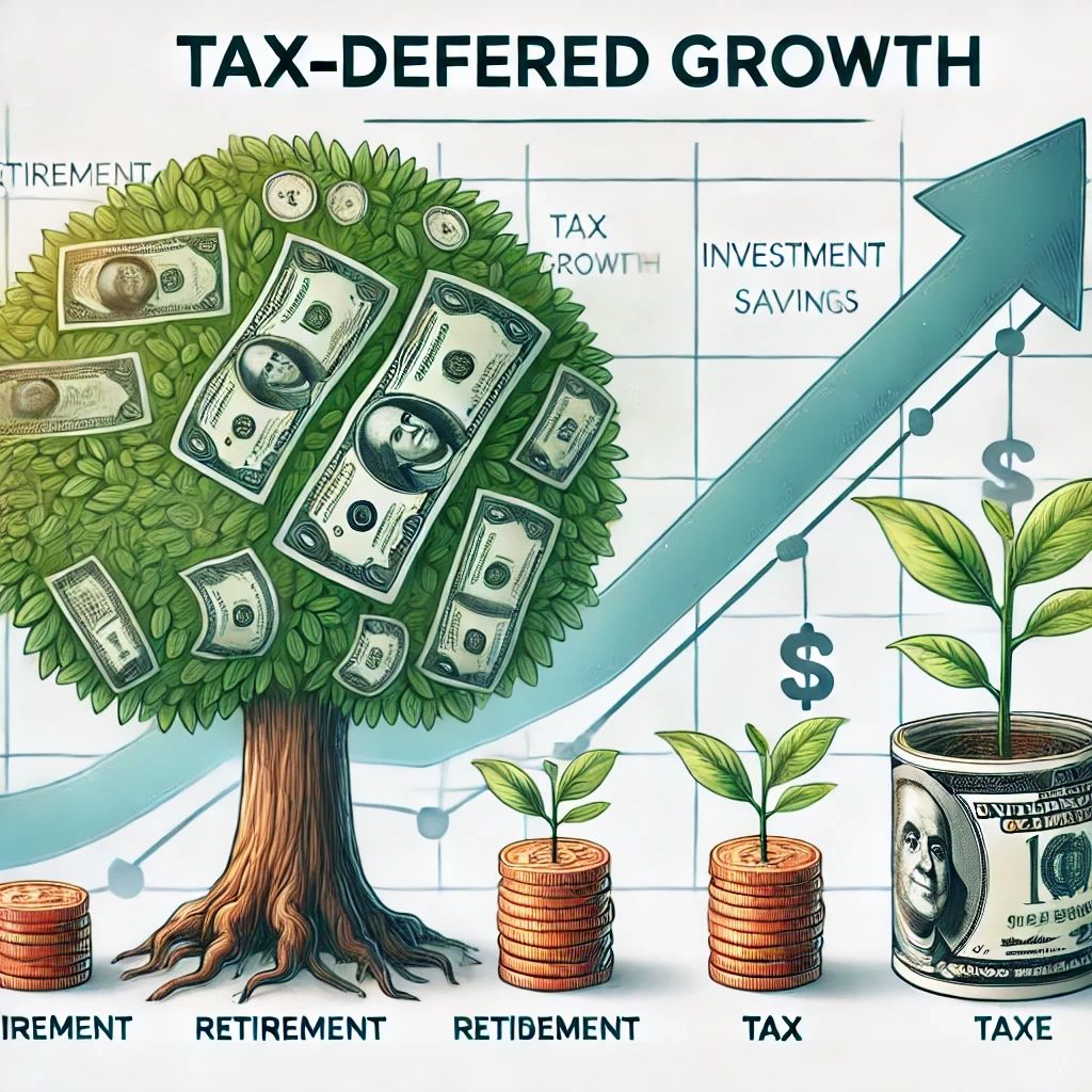 Tax-deferred growth is a financial strategy where you delay paying taxes on investment gains until you withdraw the funds. This allows your investments to grow more quickly, as no money is deducted for taxes during the growth period. Common vehicles for tax-deferred growth include: